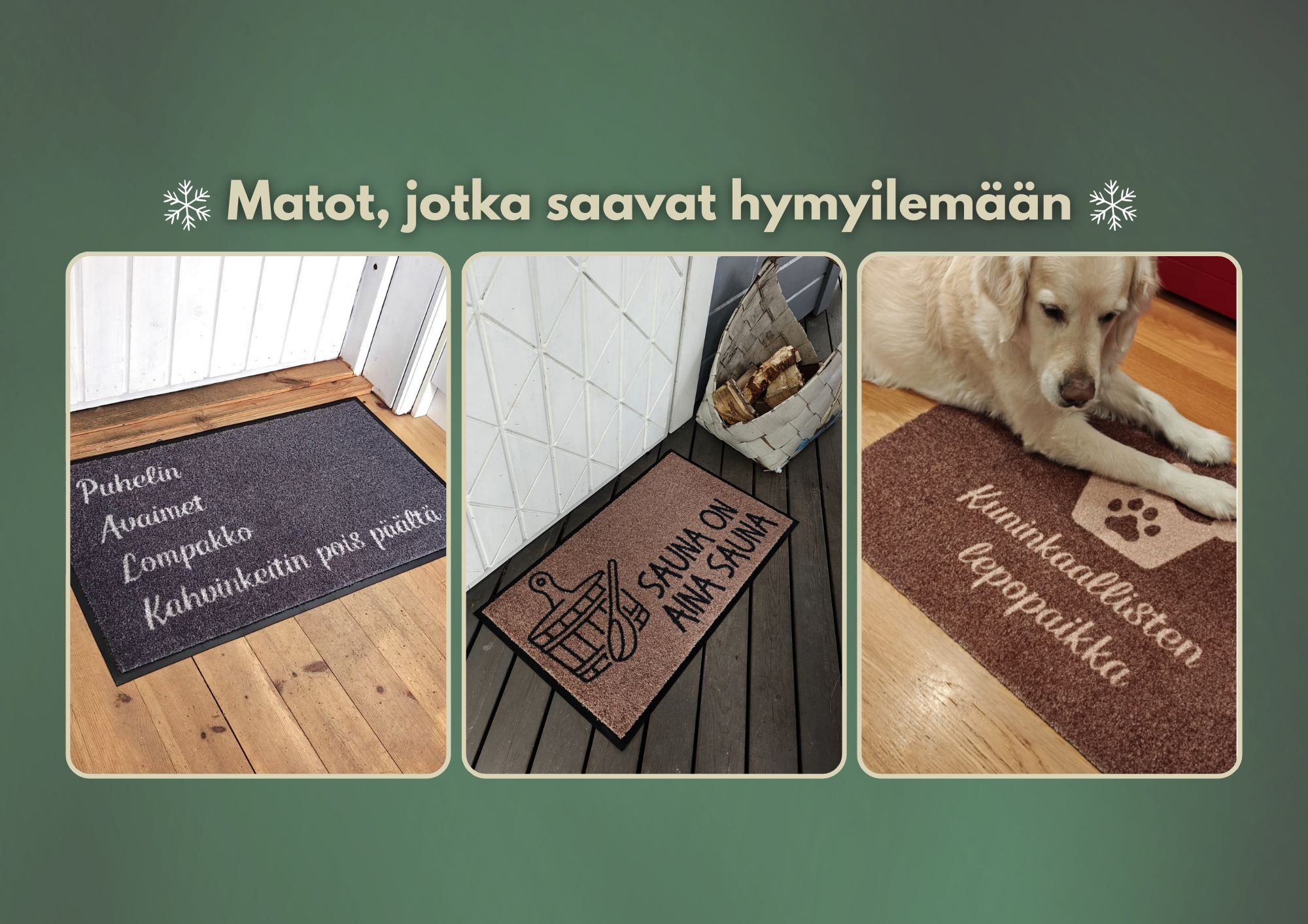 Hauskojen ja personoitavien ovimattojen avulla tuot iloa, helppoutta ja siisteyttä arkeesi.