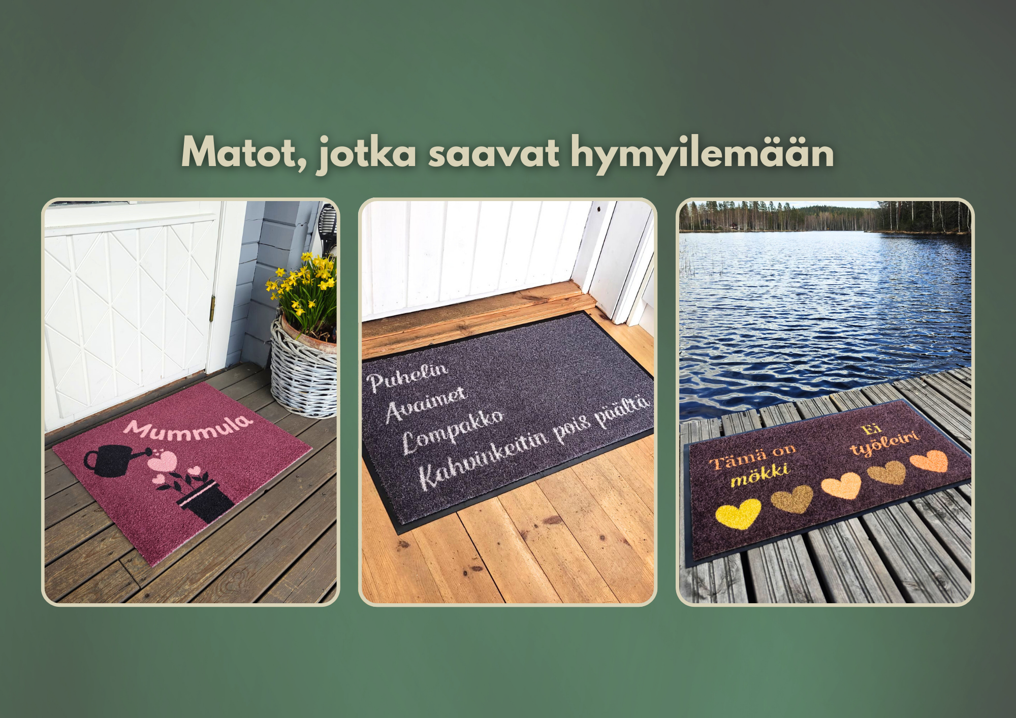 Hauskojen ja personoitavien ovimattojen avulla tuot iloa, helppoutta ja siisteyttä arkeesi.